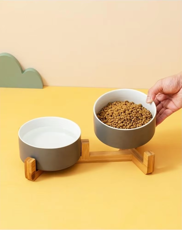 Zadbaj o wygodę i zdrowie swojego pupila dzięki ceramicznej podwójnej misce o nowoczesnym, zintegrowanym designie.